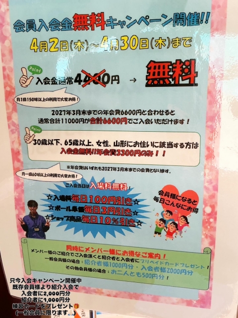 ホーム > お知らせ > 4月2日~30日入会金無料キャンペーン開催中