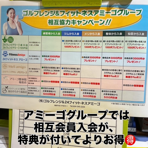 昨年は、 スタッフの体調不良で 準備が出来なかったショートコースラウンド会 改め「ショートコースゲーム会⛳️」ですが、 今年は5月24日(日)営業終了後の、 19:00〜20:30で開催する事となりました こちらはもちずり店のフェアウェイにて 開催される初心者向けのゲーム会でして、 ラウンド経験が無い、ラウンド経験が少ない方に フェアウェイ内で打つ経験をして欲しい そんな想いで開催を企画しております スコアは一切気にしなくて良いですし、 クラブは、ピッチング1本で回れます パターも使用しますが、無料で貸し出します メンバー1,200円、ビジター1,650円で 貴重な経験が出来ますので、 遠慮無く気軽に参加頂ければと思います (事前予約になっております) また、ショートコースゲーム会とは別で、 アミーゴグループでは、 グループ内での相互会員入会での 特典がございます 24フィットネスの会員で、 ゴルフでも会員になりたい方など、 特典が付いてよりお得に入会が出来ます 是非、相互会員でのご入会を お待ちしております